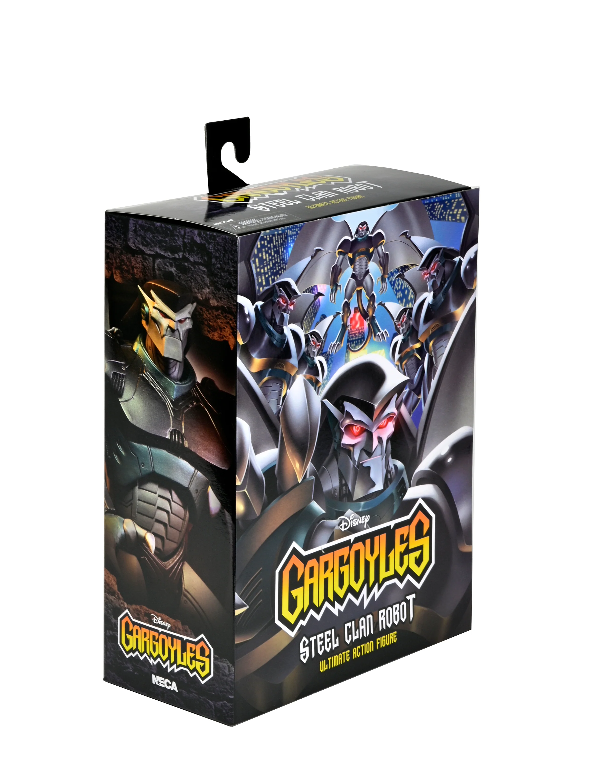 "One thousand years ago, superstition and the sword ruled..." The time of the Gargoyles has come again! Arguably the best gothic cartoon of the 1990s, Gargoyles followed an ancient clan of gargoyles transported to modern-day Manhattan when their Scottish castle is relocated. Ruthless businessman David Xanatos created the Steel Clan robots in the image of the Gargoyles to be his personal army. This impressively large figure stands over 8” tall and includes gauntlet blasters, attachable thruster blasts and interchangeable hands. Also features bendable tail and open and closed wings. Comes in display-friendly window box packaging with opening flap.