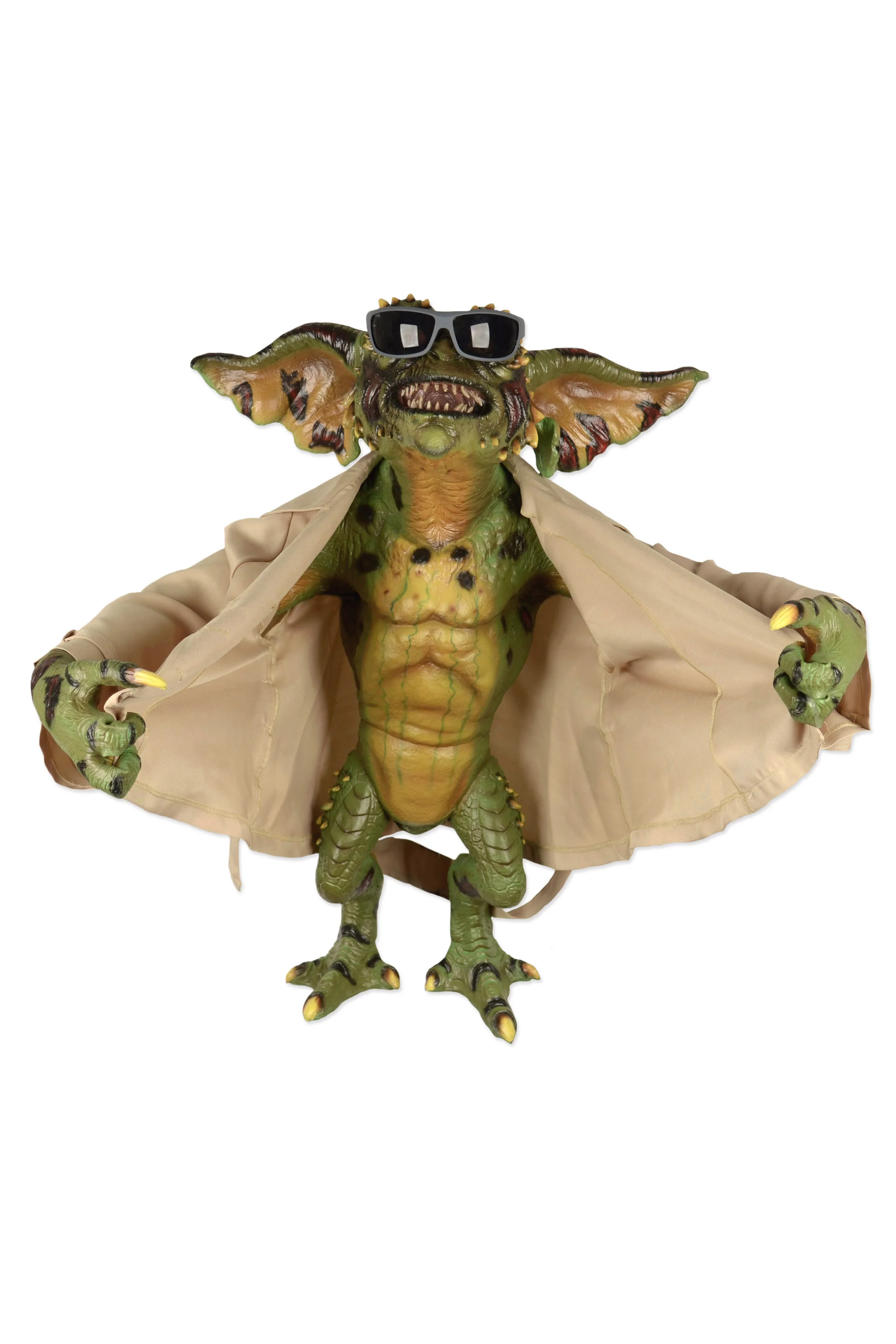 Own an authentic, full-size replica of the Flasher Gremlin stunt puppet from Gremlins 2: The New Batch! This hand-painted rubber and latex figure stands nearly 30" tall and features a fabric trench coat and removable sunglasses, all entirely faithful to Flasher's on-screen wardrobe. Comes complete with a metal display stand. The perfect addition to your Gremlins collection!