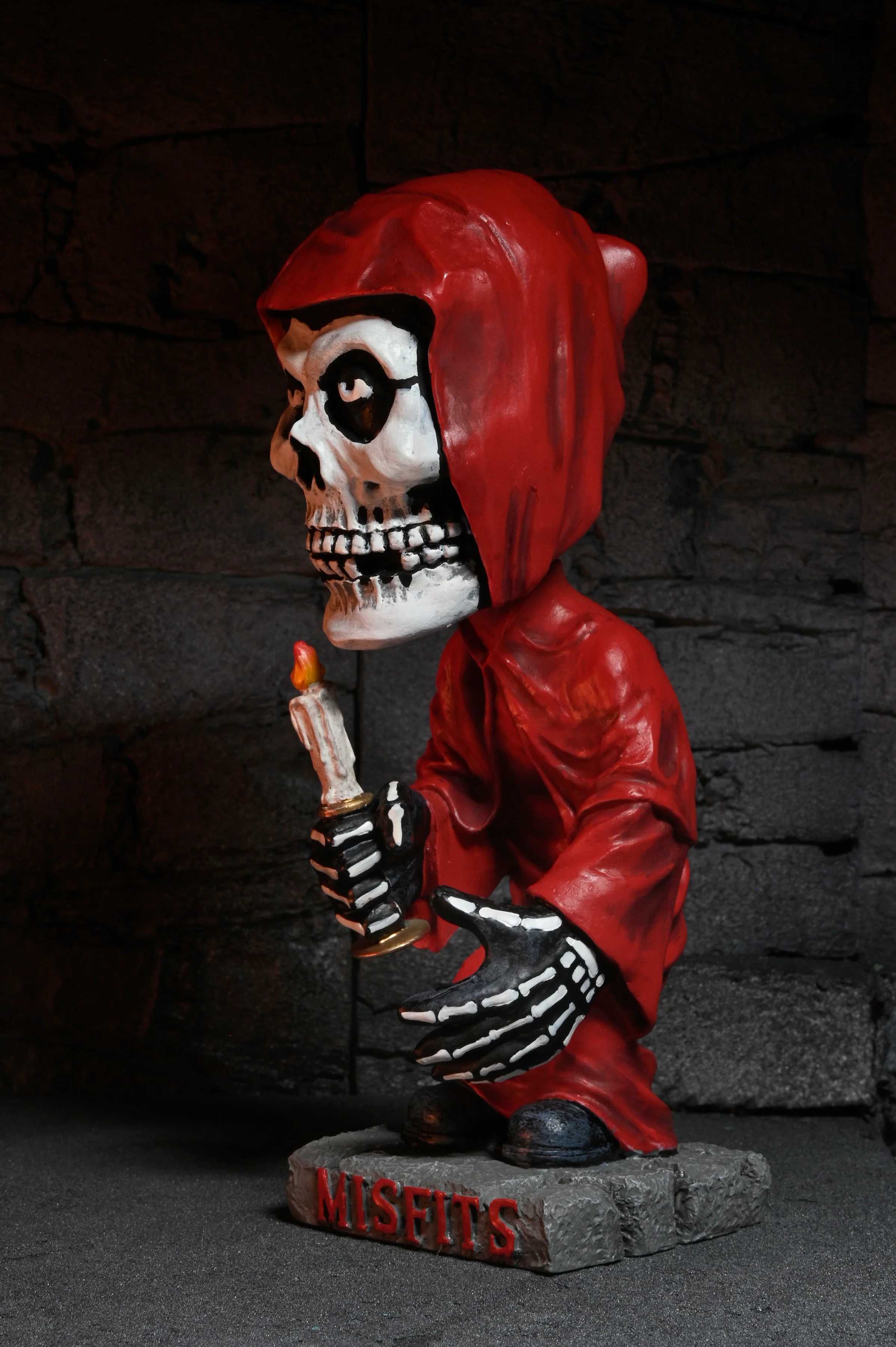 As seen in the Final Destination: Bloodlines trailer! The Misfits are one of the most recognized punk bands ever, and their mascot springs to life as a NECA Head Knocker! Standing over 7 inches tall, the Fiend is cast in collector’s quality resin and hand painted to bring all its unmistakable, skeletal features to life. This one-of-a-kind collectible comes with a spring mechanism for fun head bobble movement, so he can rock out when you’re blasting your favorite Misfits songs! Comes in collectible matte packaging with spot gloss finish.